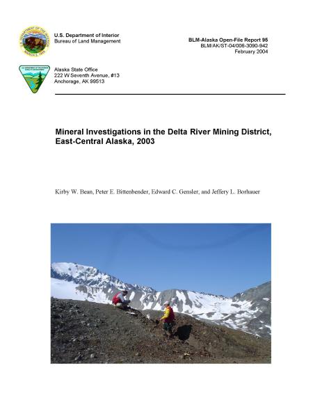 In 2003, the Bureau of Land Management (BLM) completed the third year of the Delta River Mining District study. Investigators surveyed, mapped, or sampled 51 mineral occurrences in the 2.9-million-acre Delta River Mining District, which extends across the Alaska Range from Paxson to Delta Junction, in east-central Alaska. The BLM collected and analyzed 446 rock chip, placer, pan concentrate, and stream sediment samples during the investigation. Fieldwork for the Delta River Mineral study is scheduled to be completed in 2004 with a final report being produced in 2005.