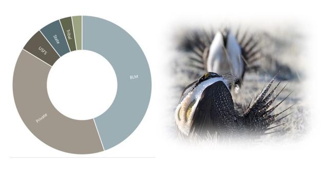 As is true of any wildlife, sage-grouse do not acknowledge land ownership status or administrative boundaries, and their season-based lifecycles typically involve wide areas at different times of the year, for different uses: mating, nesting, brood-rearing. Responding to downward trends in populations or habitat conditions must be an all-hands effort, with an eye on the landscape level. The habitat under BLM stewardship – a 45% share – is wide and varied enough to provide much-needed monitoring data and places to utilize various science-based management tools to support conservation.