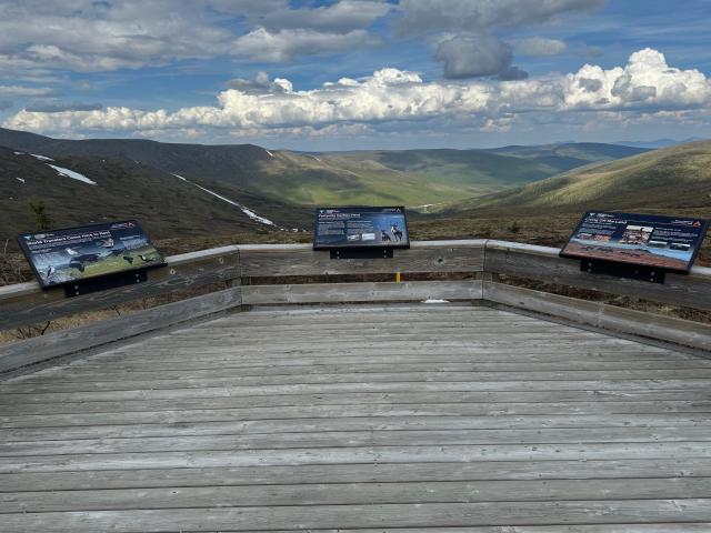 Both waysides have accessible viewing platforms with interpretive signs and expansive views of the Steese National Conservation Area. These waysides are popular places to look for the Northern Lights in the winter and they provide unobstructed views of the midnight sun during the summer solstice. The Eagle Summit viewing platform sits along an accessible ¼-mile trail loop with signs identifying various alpine tundra vegetation, allowing visitors with disabilities to experience the tundra more directly than looking down from above on the viewing platform.