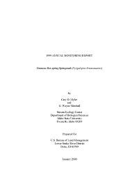 Bruneau Hot-Spring Springsnail (Pyrgulopsis bruneauensis). 1999 Annual Monitoring Report