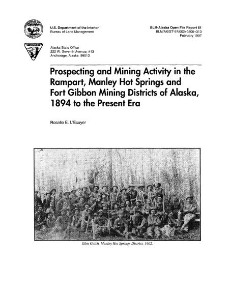 Prospecting and Mining Activity in the Rampart, Manley Hot Springs and Fort Gibbon Mining Districts of Alaska, 1894 to the Present Era