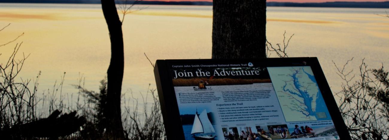 The Captain John Smith Chesapeake National Historic Trail is a series of water routes extending approximately 3,000 miles along the Chesapeake Bay, the nation's largest estuary. These historic routes trace the 1607–1609 voyages of Captain John Smith as he charted the land and waterways of the Chesapeake. It meanders along the shoreline of Douglas Point, Maryland, where the BLM manages the historic 18th century Chiles home site in partnership with the National Park Service. Paddlers may rest at the Blue Bay water stop and enjoy picnic facilities. This stop also provides access to the Chiles site, and is a trailhead for the Potomac Heritage National Scenic Trail as it crosses Douglas Point. National Historic Trails closely follow a historic trail or route of travel of national significance. This congressional designation identifies and protects historic routes, historic remnants, and artifacts for public use and enjoyment.