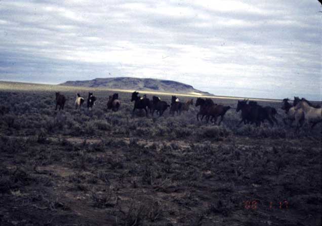 Historically, this Herd Management Area (HMA) has consisted of a high percentage of pinto and buckskin colored horses that exhibit saddle stock conformation. The herd has been managed to maintain this conformation and color. The Sand Springs horses can and sometimes do, migrate into the adjoining Sheepshead/Heath Creek HMA on the southwest side of highway 78. Herd characteristics are mostly pinto, buckskin, sorrel, bay and brown colors. Adult horses range from 14.2 to 15.2 hands and 1,050 to 1,250 pounds. Genetic analysis of this HMA shows that these horses have the highest genetic similarity with Light Racing and Riding breeds, followed closely by the Old World Iberian breeds.